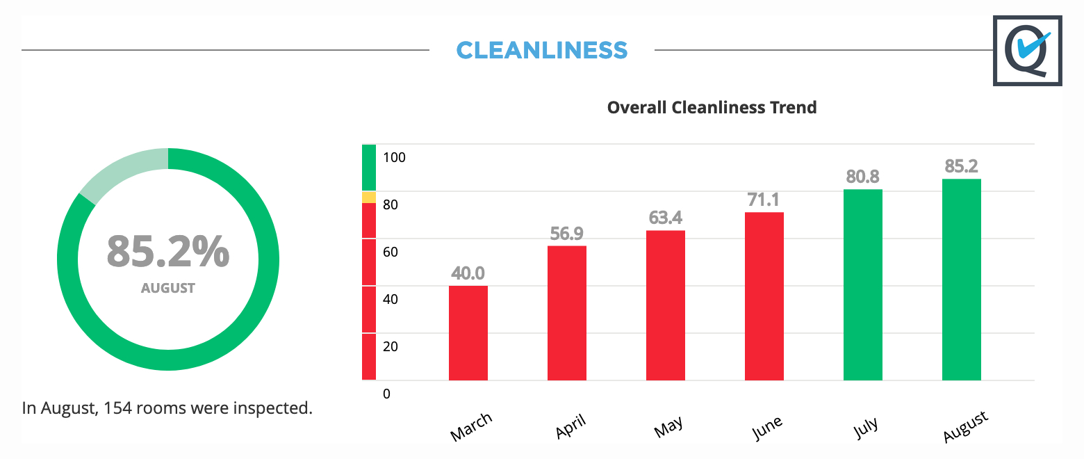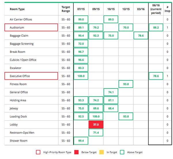 This information will help you allocate labor and other resources to improve performance. For example, if the loading dock is exceeding your quality targets, you may want to reduce the effort and resources in that space to focus on rooms not meeting the expected standards.