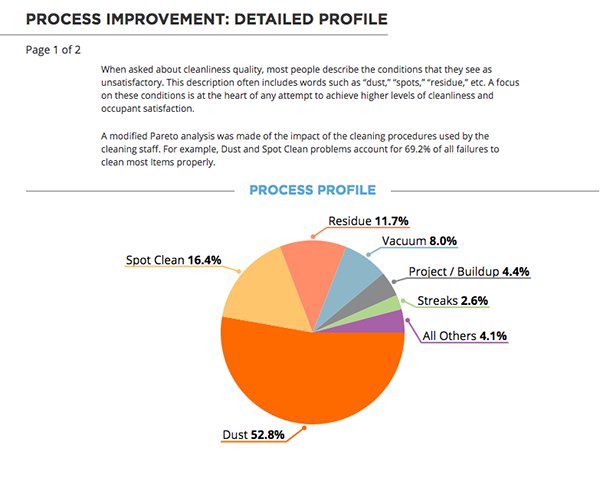 Fundamentally, when the provided information allows you identify the item and the attribute (condition) that cause a cleaning failure or defect, you can change and improve the one task used to clean that item to prevent future failure. This is because not all attributes (dust, streaks, buildup, etc.) are cleaned in the same way; even the same attribute may be corrected using different procedures and equipment.